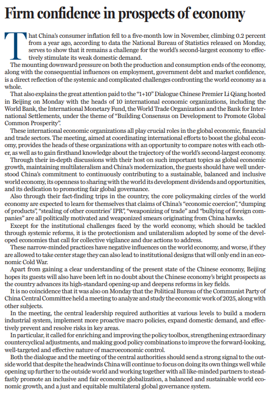“1+10”對(duì)話的同一天,中共中央政治局12月9日召開(kāi)會(huì)議,分析研究2025年經(jīng)濟(jì)工作及其他議題。