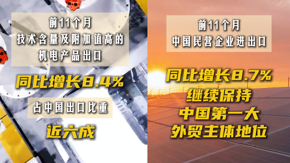 今年以來,中國外貿(mào)運(yùn)行總體平穩(wěn)。海關(guān)總署12月10日數(shù)據(jù)顯示,今年前11個(gè)月,我國貨物貿(mào)易進(jìn)出口總值39.79萬億元,同比增長4.9%。全年外貿(mào)可望平穩(wěn)收官,實(shí)現(xiàn)質(zhì)升量穩(wěn)目標(biāo)。
