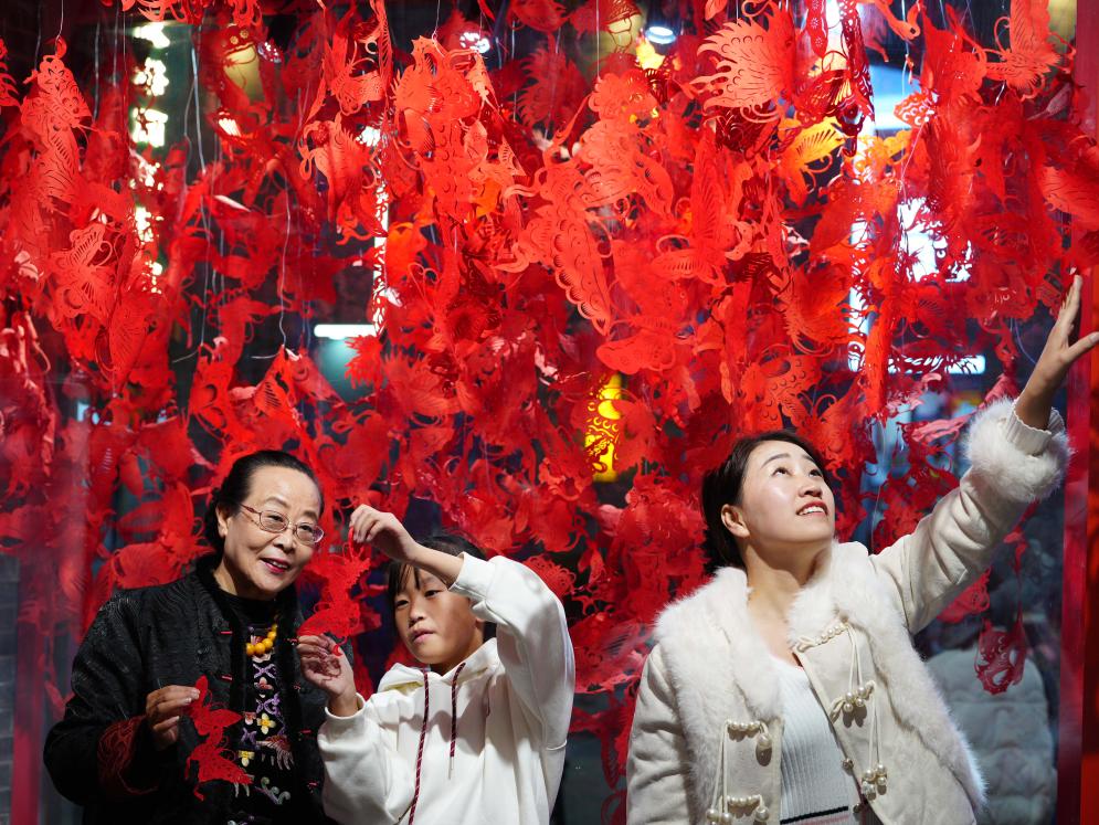 11月23日,市民在石家莊市新華區(qū)灣里廟步行街參觀非遺工作室。河北省石家莊市著力培育夜經(jīng)濟(jì)新場景新業(yè)態(tài),打造集美食、娛樂、購物、非遺等于一體的夜經(jīng)濟(jì)消費(fèi)圈,豐富市民夜生活。新華社發(fā)(閆志國攝)