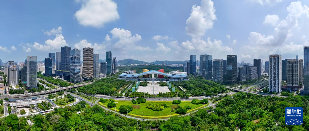這是貫穿深圳福田CBD、市民中心、蓮花山公園的深圳中軸線(2024年8月27日攝,無人機(jī)全景照片)。