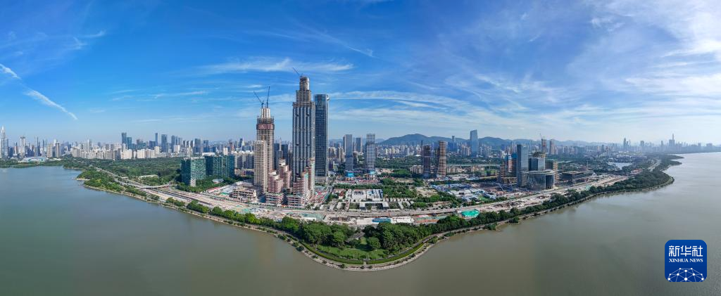 這是建設(shè)中的深圳灣超級總部基地(2024年10月3日攝,無人機(jī)全景照片)。