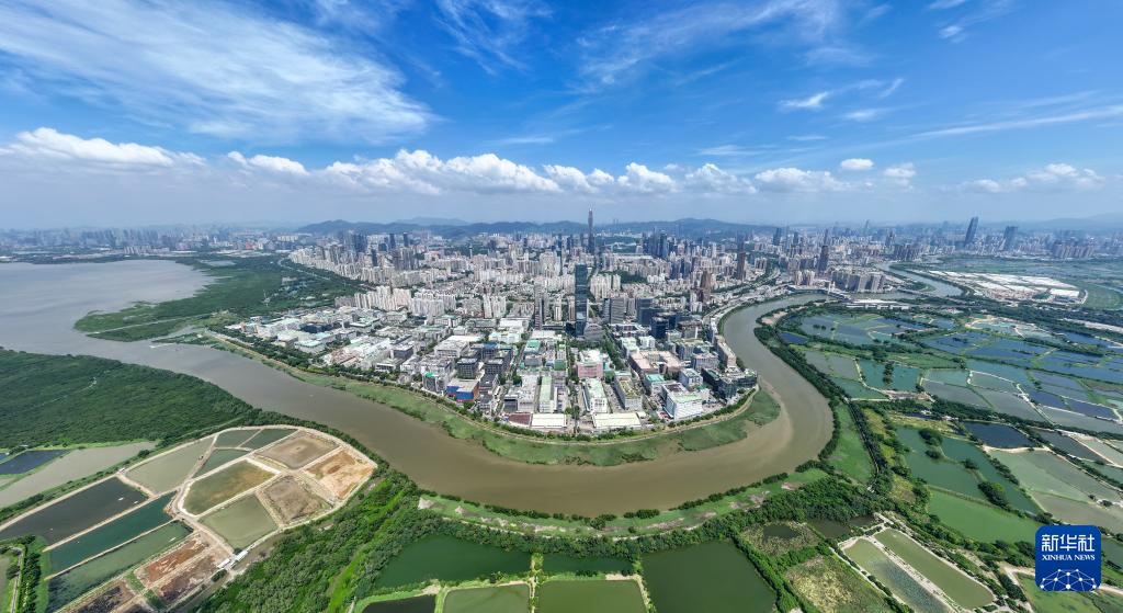 這是河套深港科技創(chuàng)新合作區(qū)及深圳河兩岸風(fēng)光(2024年9月19日攝,無人機(jī)照片)。