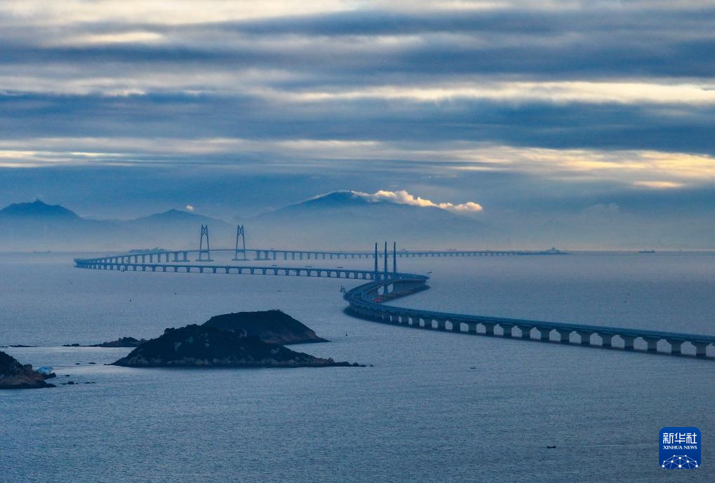 這是晨曦中的港珠澳大橋(2023年12月15日攝,無人機(jī)照片)。