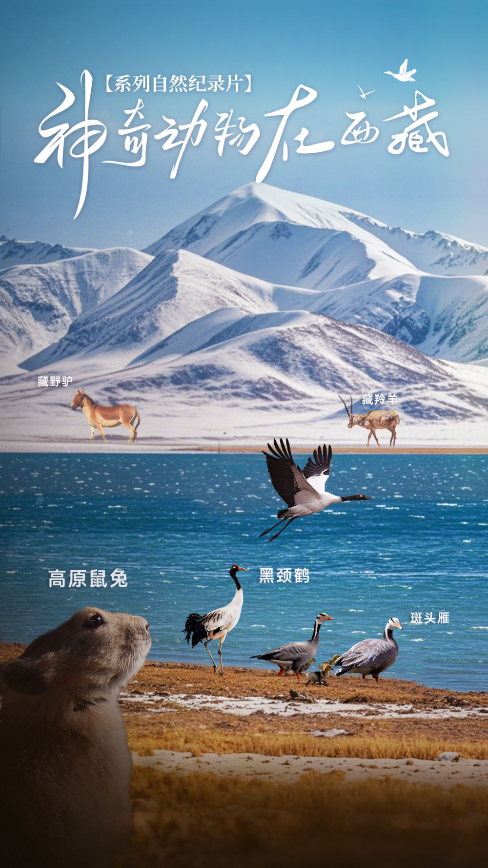 五集自然紀錄片《神奇動物在西藏》,聚焦高原鼠兔、藏野驢、黑頸鶴、藏羚羊和斑頭雁,展現(xiàn)它們令人驚嘆的生存密碼,詮釋人與自然和諧共生的美好景象。