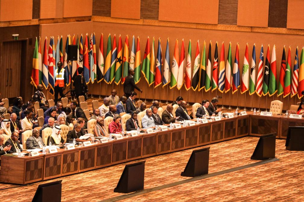 這是2024年1月19日在烏干達首都坎帕拉拍攝的不結盟運動第19次峰會會場。新華社發(fā)(阿佳拉·納瓦達攝)
