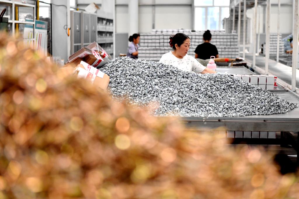 2024年8月16日,在邯鄲市永年區(qū)一家緊固件生產(chǎn)企業(yè),工人在包裝車間內(nèi)工作。新華社記者 王曉 攝