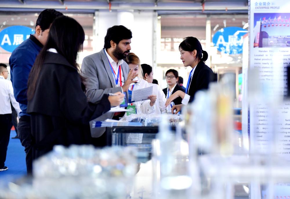 2024年10月10日,采購商(中)在2024年中國·永年緊固件基地國際采購大會現(xiàn)場了解緊固件產(chǎn)品信息。新華社記者 王曉 攝