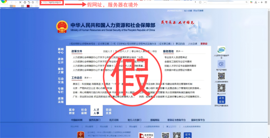 (仿冒人力資源和社會(huì)保障部相關(guān)網(wǎng)站,網(wǎng)址域名多次跳轉(zhuǎn))