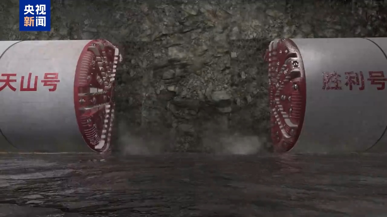 再看工具。兩臺“吞石巨獸”——“天山號”和“勝利號”硬巖掘進(jìn)機(jī)是為打通天山量身定做的。刀盤直徑8.43米,接近3層樓高度。工作時,這對“雙胞胎”從中導(dǎo)洞的兩端朝中間“雙向奔赴”。打通天山可不容易,不僅隧道長度破紀(jì)錄,還要穿越16條地質(zhì)斷裂帶,這就如同在豆腐腦里雕花。特別是在穿越F6地質(zhì)帶時,36天的隧道涌水量,相當(dāng)于近30個標(biāo)準(zhǔn)游泳池的水量,掘進(jìn)速度一下就踩了急剎車,從每天35米銳減到每天只能走3到5米。