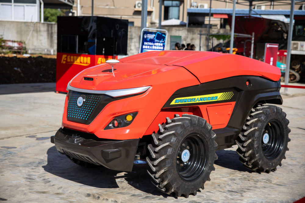 “起步、前進(jìn)……”隨著工作人員的口令和指揮,一臺由湖南省農(nóng)業(yè)裝備研究所研制的智能無人駕駛拖拉機(jī)展示起停、轉(zhuǎn)彎、掉頭等功能。這臺機(jī)器功能多樣,能夠?qū)崿F(xiàn)除草、施肥和旋耕等,能應(yīng)用于設(shè)施農(nóng)業(yè)和果園。