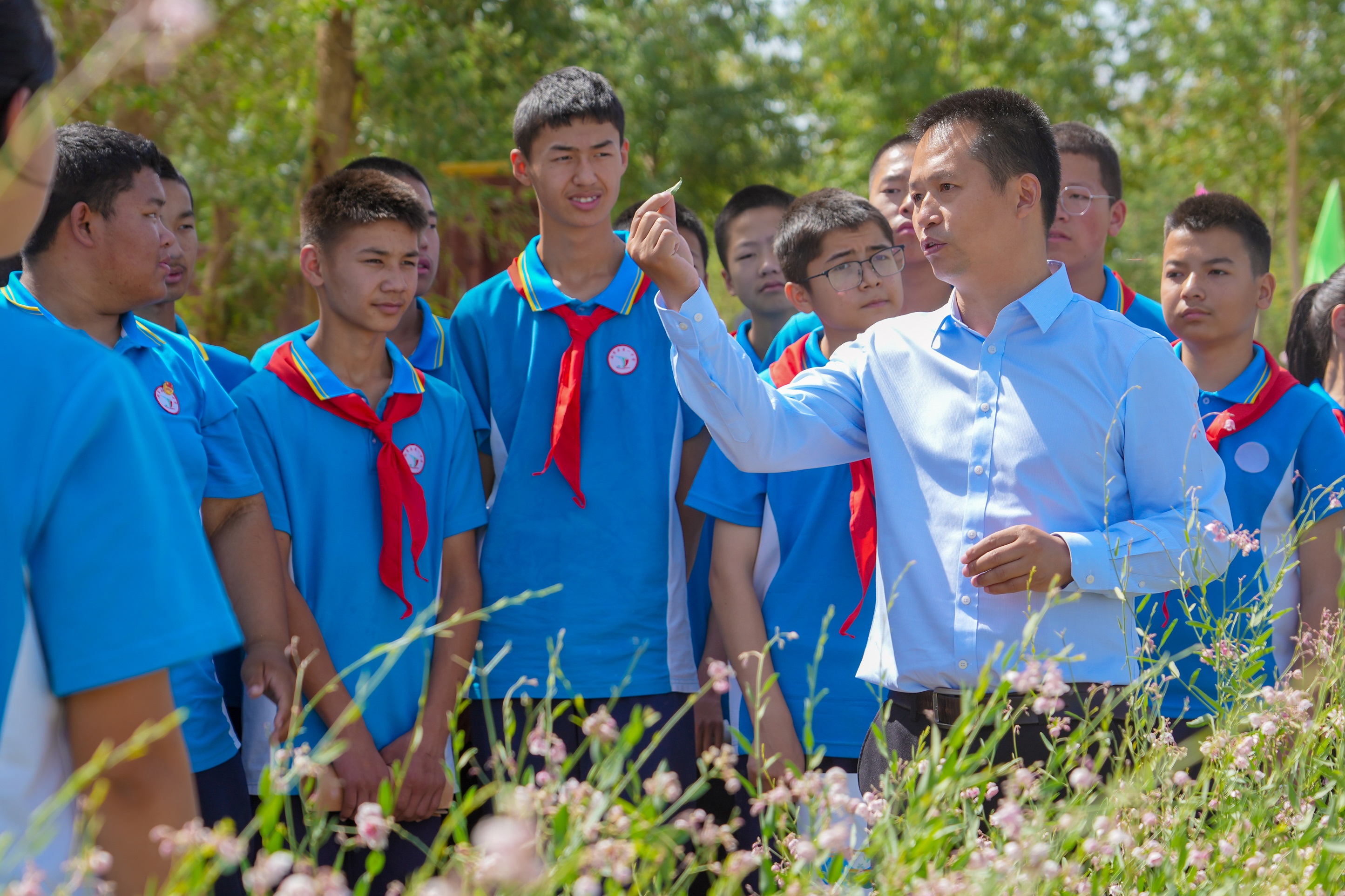 學(xué)生們在尉犁縣羅布麻種植基地參觀。奧瓊 攝