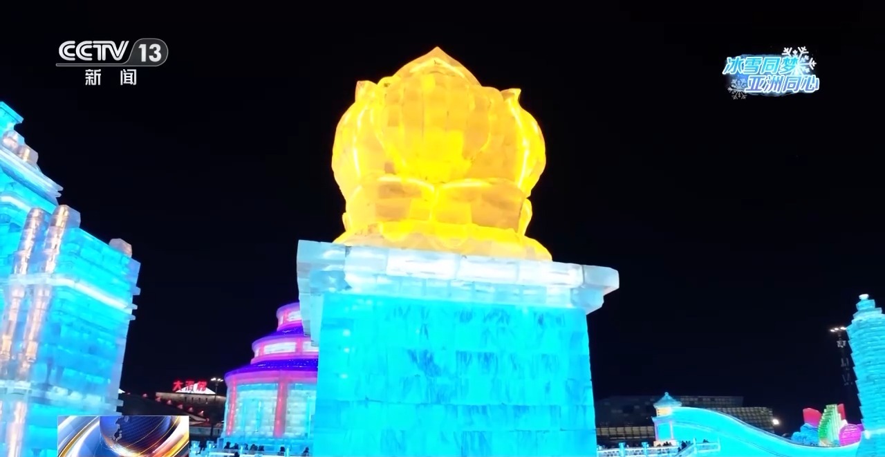 本屆冰雪大世界園區(qū)設(shè)計和建設(shè)充分融入亞冬會元素,園區(qū)將亞奧理事會成員的地標(biāo)景觀,以冰雪形式呈現(xiàn)出來,吸引了不少國內(nèi)外游客前來打卡。