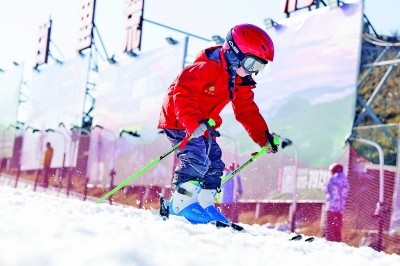 小朋友在湖北省宜昌市夷陵區(qū)百里荒滑雪場(chǎng)體驗(yàn)滑雪。新華社發(fā)