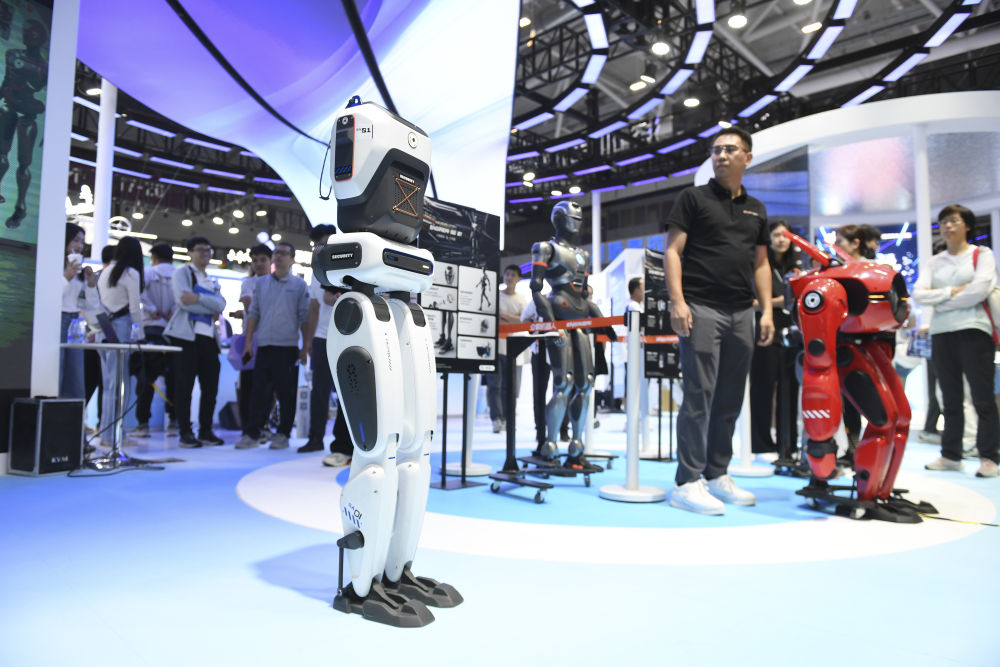 在深圳舉行的第二十六屆中國(guó)國(guó)際高新技術(shù)成果交易會(huì)上,深圳市眾擎機(jī)器人科技有限公司展示雙足機(jī)器人SA01的行走能力(2024年11月14日攝)。 新華社記者 毛思倩 攝
