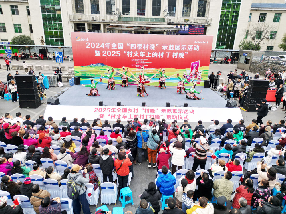 新鮮的農(nóng)產(chǎn)品、喜慶的車廂、特色的民族歌舞、精美的非遺展示……1月18日,2025年全國(guó)鄉(xiāng)村“村晚”示范展示活動(dòng)暨“村火車上的村T村晚”啟動(dòng)儀式,在貴陽開往玉屏的5640次“慢火車”上舉行。