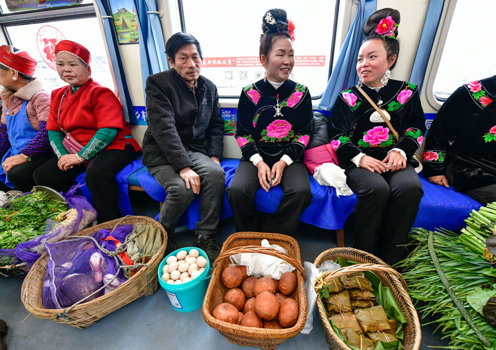 近年來,搭上這趟“慢火車”外出賣菜的村民較多,列車成了熱鬧的“移動(dòng)集市”,是鄉(xiāng)親們走親訪友的“幸??燔嚒保前汛笊嚼锏霓r(nóng)特產(chǎn)品送到山外售賣的“致富快車”,被村民們稱為“村火車”。