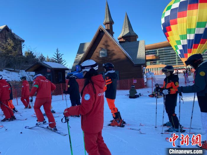 正值2024至2025雪季期間,當(dāng)日下午,一行人來到富龍滑雪場體驗滑雪。考慮多數(shù)人是“首滑”,當(dāng)?shù)匕才帕藢I(yè)教練教授雙板滑雪入門知識。