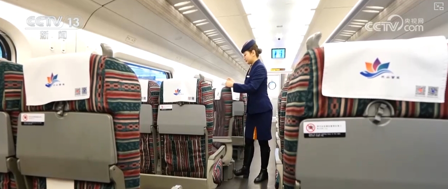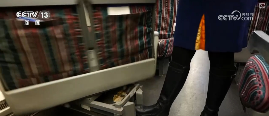 國(guó)鐵烏魯木齊局烏魯木齊客運(yùn)段C845次列車員阿依江介紹,動(dòng)車座椅上的這個(gè)犄角叫“羊角把”,是旋轉(zhuǎn)座椅的“小把手”。當(dāng)動(dòng)車組列車抵達(dá)終點(diǎn)站,再返程時(shí)列車運(yùn)行方向變了。為了讓旅客面向列車前進(jìn)的方向,這樣視覺(jué)更加舒適,他們會(huì)在終點(diǎn)站把座椅旋轉(zhuǎn)180度。像這樣腳踩座椅下方的旋轉(zhuǎn)腳踏,再用手抓住“羊角把”,輕輕一拉就能調(diào)轉(zhuǎn)座椅方向。