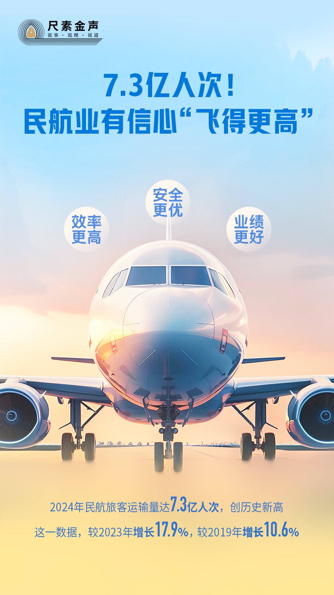 7.3億人次! 2024年民航旅客運輸量達(dá)7.3億人次,創(chuàng)歷史新高,這一數(shù)據(jù),較2023年增長17.9%,較2019年增長10.6%。