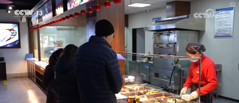 今天很多都是一個家庭三四口人結(jié)伴出行,趕著回家過除夕,當(dāng)然還有一部分在忙于奔波,比如貨車司機(jī)。他們來到這里之后,可以去司機(jī)之家,接一壺?zé)崴匆淮螣崴?,好好休息調(diào)整一番。對于那些到了晚上,還沒來得及趕到家吃上年夜飯的司乘人員,服務(wù)區(qū)還準(zhǔn)備了免費年夜飯,菜品豐富,來自天南海北的人們可以聚在這兒,共度除夕夜。