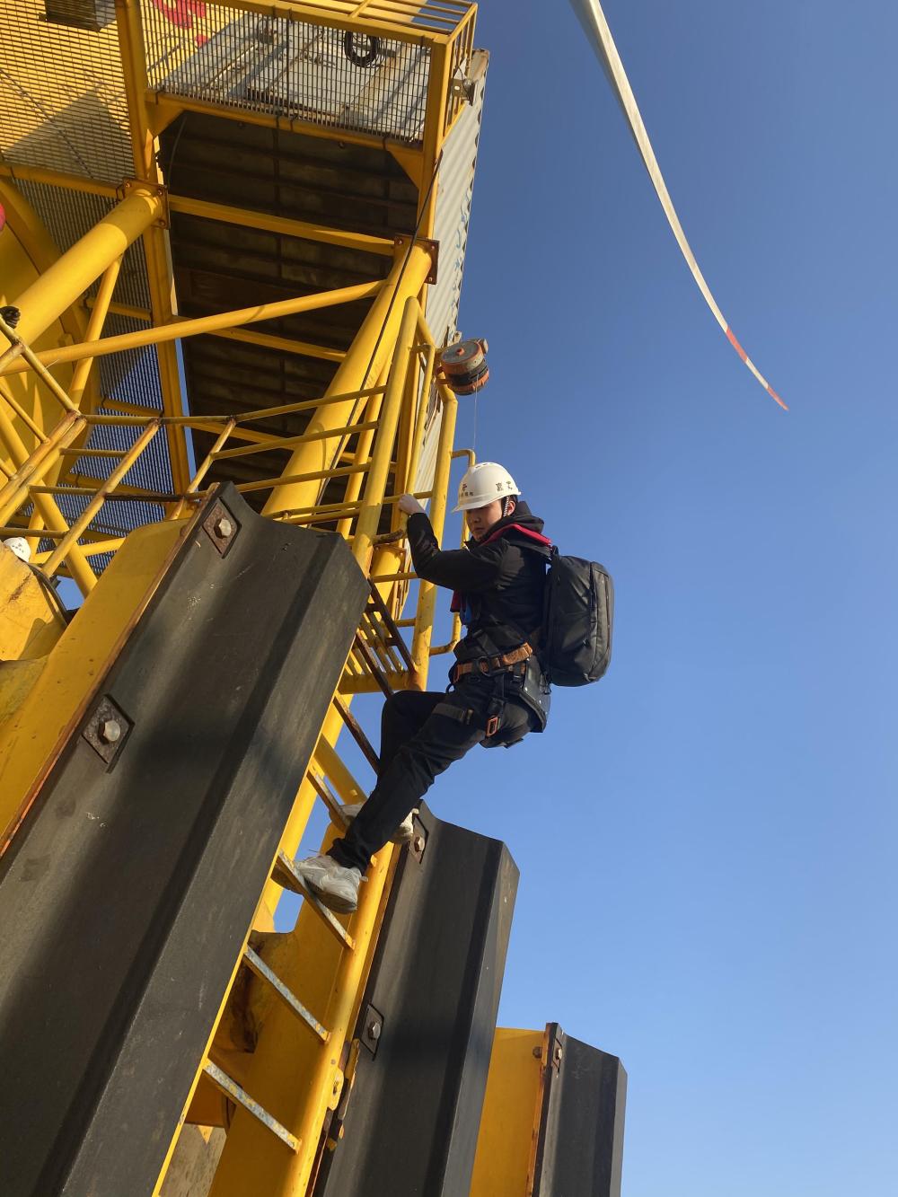 爬上數(shù)十米高的風(fēng)機進(jìn)行檢修