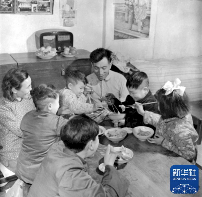 20世紀(jì)60年代初,遼寧鞍鋼老工人于德舉一家在吃年夜飯。為過年準(zhǔn)備一頓豐盛的飯菜是當(dāng)時(shí)人們頗費(fèi)腦筋的事。新華社記者 苗明 攝