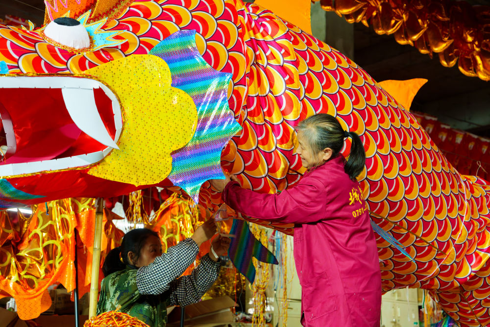 1月24日,城南龍燈廠2024年以來生產(chǎn)的第一萬條傳統(tǒng)龍燈,從陳列館中被“請(qǐng)”出。