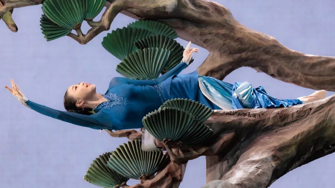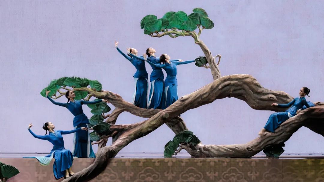 當(dāng)舞臺(tái)變成一方宋畫尺牘,背景成為留白氤氳的宣紙,舞者化作工筆描摹的墨痕,橫軸豎幔間,十只報(bào)春“喜鵲”從古卷中躍然而出。