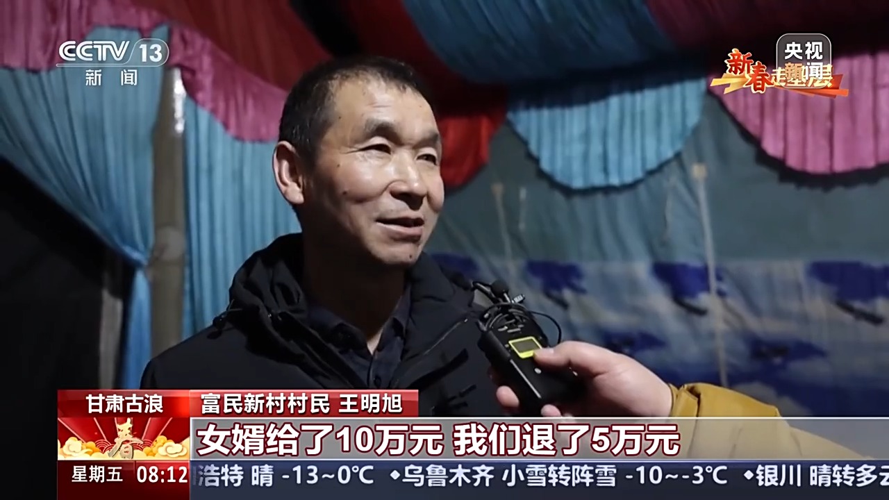 富民新村村民 王明旭:女婿給了10萬元,我們退了5萬元,剩下的用于婚禮的開銷。要得多了,也是給年輕人增加負(fù)擔(dān)。