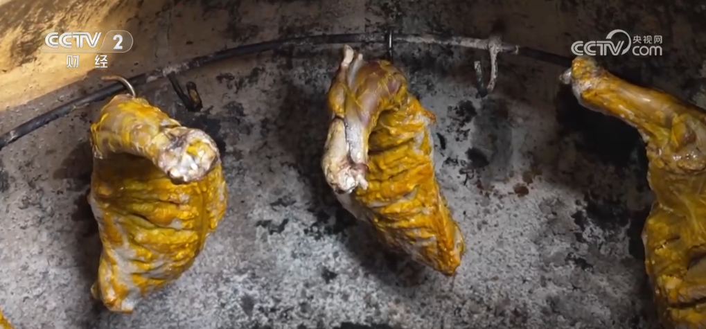 要說新疆美食,馕坑烤全羊那是必打卡的。新鮮的羊排配上面粉、雞蛋、姜黃、食鹽,放入200多攝氏度的馕坑中烤上大約1小時便可出爐。