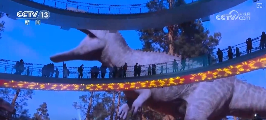春節(jié)期間循環(huán)播放的恐龍科學(xué)藝術(shù)展、春節(jié)主題展、春節(jié)檔電影精編等“四屏聯(lián)動”原創(chuàng)視頻,將光影資源與科教文化有機(jī)融合。特別是恐龍科學(xué)藝術(shù)展深受小朋友喜愛。展覽現(xiàn)場,巨幅卷軸屏以直觀的方式展現(xiàn)恐龍的樣貌與龐大體型,邀請觀眾與這些史前巨獸“比高”。環(huán)屏則將播放引人入勝的動畫視頻,生動再現(xiàn)侏羅紀(jì)中期恐龍的生活場景,讓觀眾仿佛可以跟隨恐龍的步伐,重返遠(yuǎn)古世界。