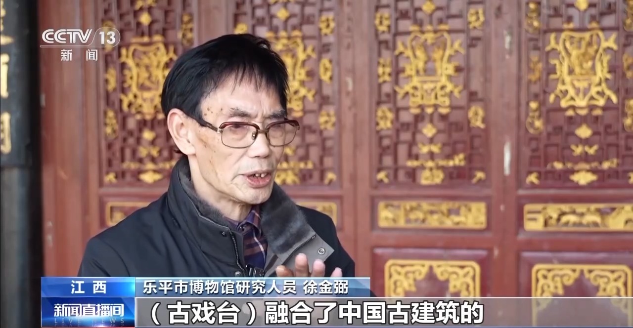 樂平市博物館研究人員 徐金弼:古戲臺(tái)融合了中國(guó)古建筑的基本重要的元素,雕工精湛,把徽派雕刻藝術(shù)全部集在一起。