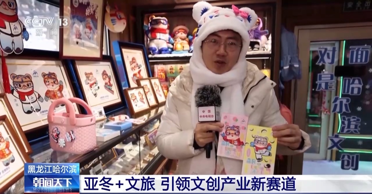 總臺記者 張程:我現(xiàn)在就位于中央大街二號的亞冬文創(chuàng)產(chǎn)品專營店,隨著亞冬會(huì)的腳步漸行漸近,同時(shí)現(xiàn)在本就是哈爾濱的冰雪文旅旺季,這里幾乎每天都是游人如織、摩肩接踵。而其中有很多爆款文創(chuàng)產(chǎn)品,現(xiàn)在已經(jīng)幾乎賣到脫銷?! ?img alt="" src="./W020250207709257686487.jpg" OLDSRC="W020250207709257686487.jpg" />