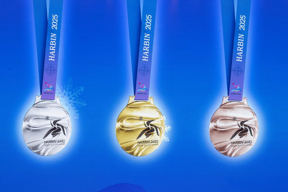這是亞冬會獎牌“競速精神”的正面(2024年10月30日攝)。
