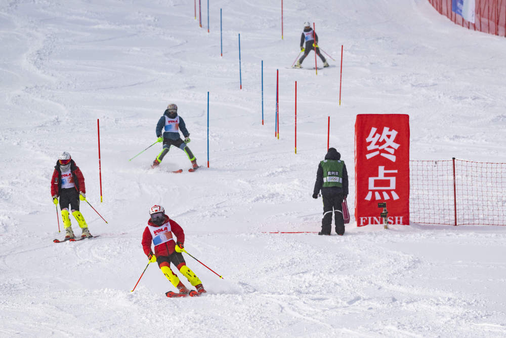 2024年12月22日,參賽選手在觀察男子回轉(zhuǎn)測試賽線路。當(dāng)日,2025年哈爾濱亞洲冬季運動會高山滑雪項目測試賽在黑龍江省亞布力體育訓(xùn)練基地(亞布力滑雪場)舉行。
