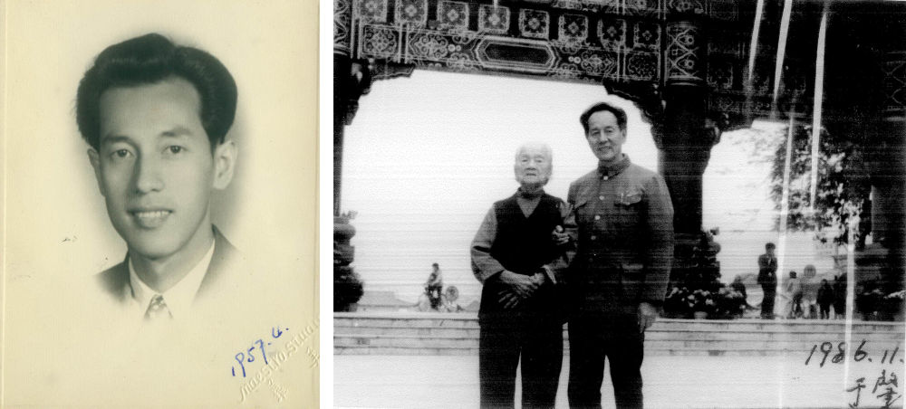 這是一張拼版照片:左圖為1957年春拍攝的黃旭華;右圖為1986年冬拍攝的黃旭華與母親的合影。新華社發(fā)