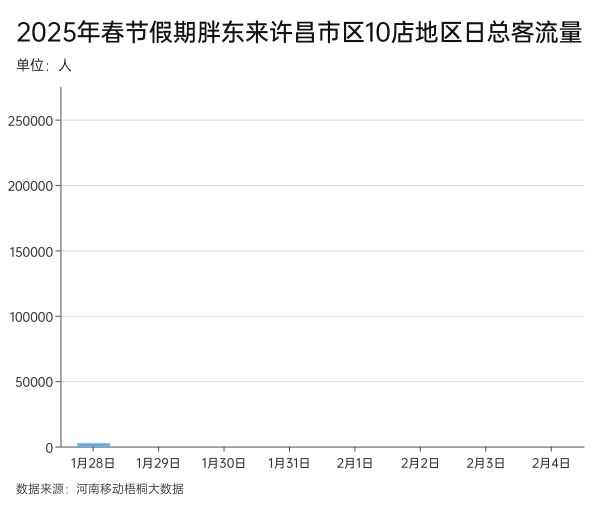 河南移動梧桐大數(shù)據顯示,2月2日至4日,胖東來許昌市區(qū)10店地區(qū)日均總客流量為假期前五天的3倍多。