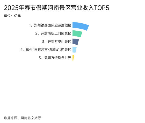 河南省文旅廳數(shù)據顯示,春節(jié)假期八天,全省營收上億元的景區(qū)僅有兩家,分別是鄭州銀基國際旅游度假區(qū)1.43億元,開封清明上河園景區(qū)1.03億元。