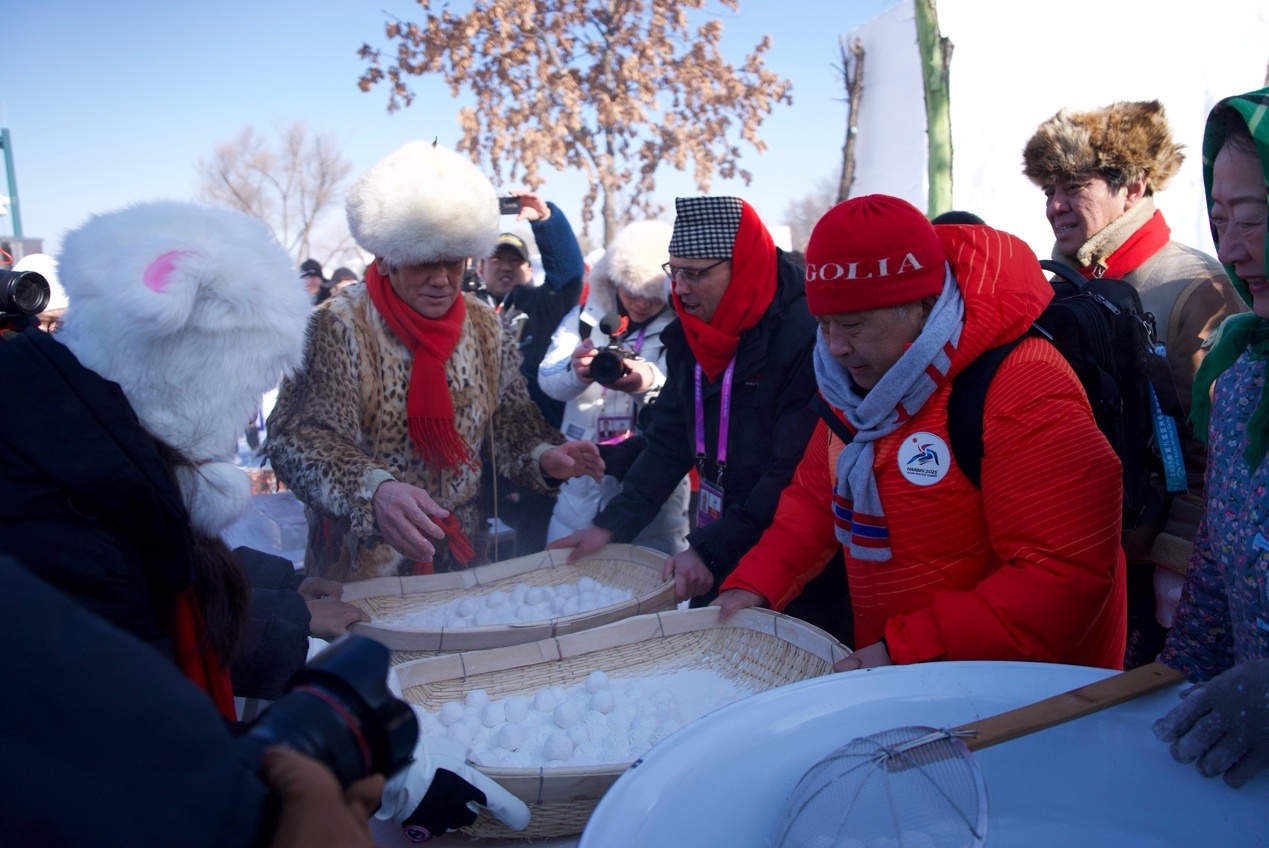 外國嘉賓們?cè)诹阆?0攝氏度的雪地上饒有興致地?fù)u著元宵,祈愿“搖”出幸福團(tuán)圓年。