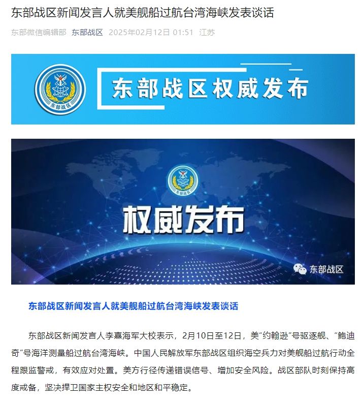 發(fā)布時間: 2025-02-12 08:38:00 來源: 東部戰(zhàn)區(qū)微信公眾號
