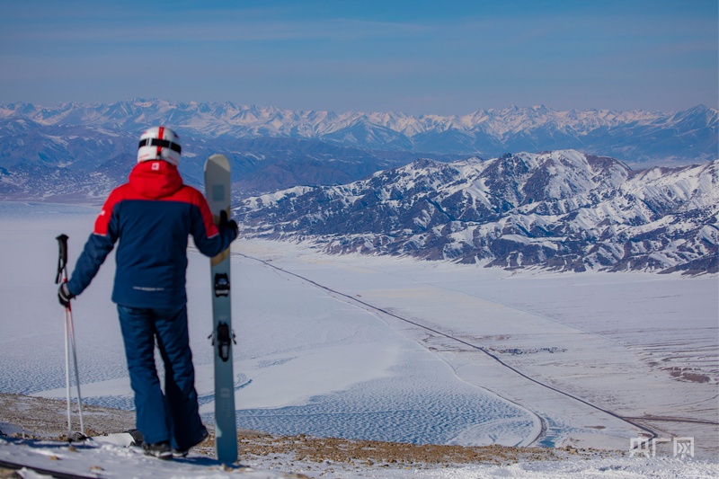 滑雪愛好者在滑雪場欣賞冬日的賽里木湖 (央廣網(wǎng)記者丁安 攝)