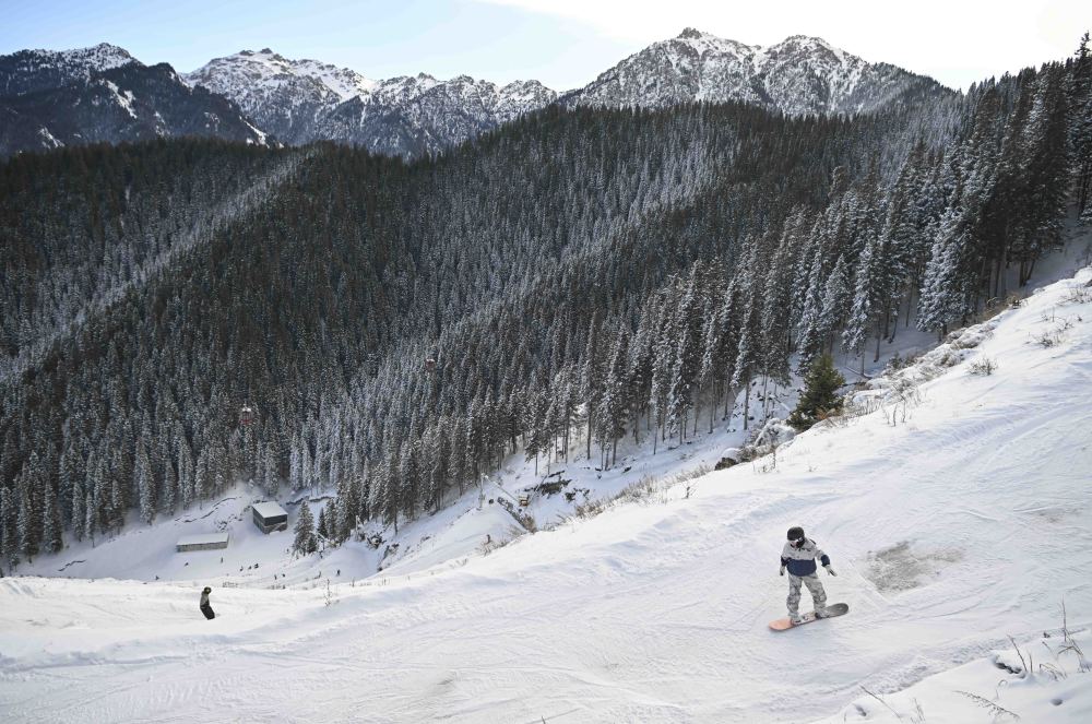 2024年11月24日,滑雪愛(ài)好者在新疆絲綢之路山地度假區(qū)滑雪。新華社記者 胡虎虎 攝