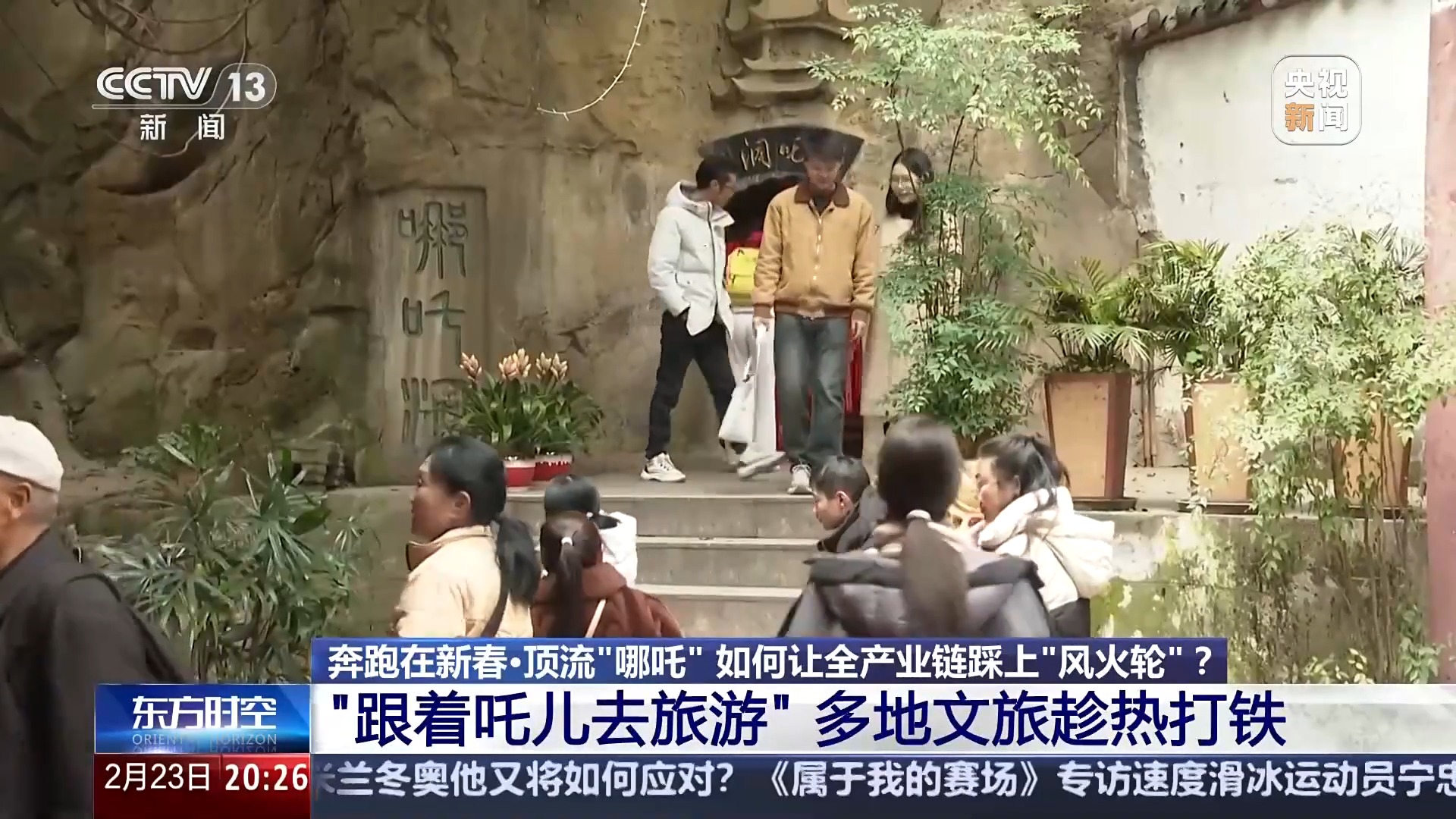 在四川宜賓的哪吒行宮、哪吒歡樂(lè)世界等景點(diǎn),絡(luò)繹不絕的游客沿石梯而上,在哪吒洞聽(tīng)講解,在游樂(lè)園體驗(yàn)游樂(lè)項(xiàng)目。