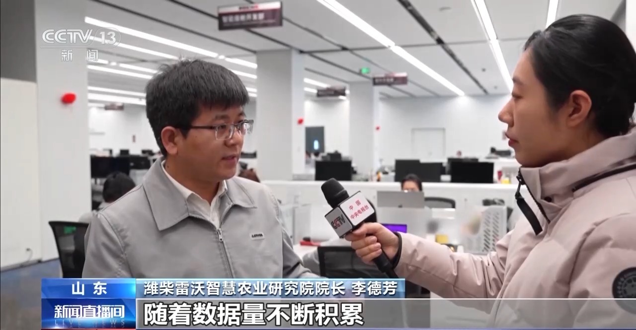 濰柴雷沃智慧農(nóng)業(yè)研究院院長 李德芳:隨著數(shù)據(jù)量的不斷積累,我喂給這個(gè)(AI)模型以后,模型不斷訓(xùn)練完以后,生成的施肥的作業(yè)建議會(huì)越來越準(zhǔn)確。