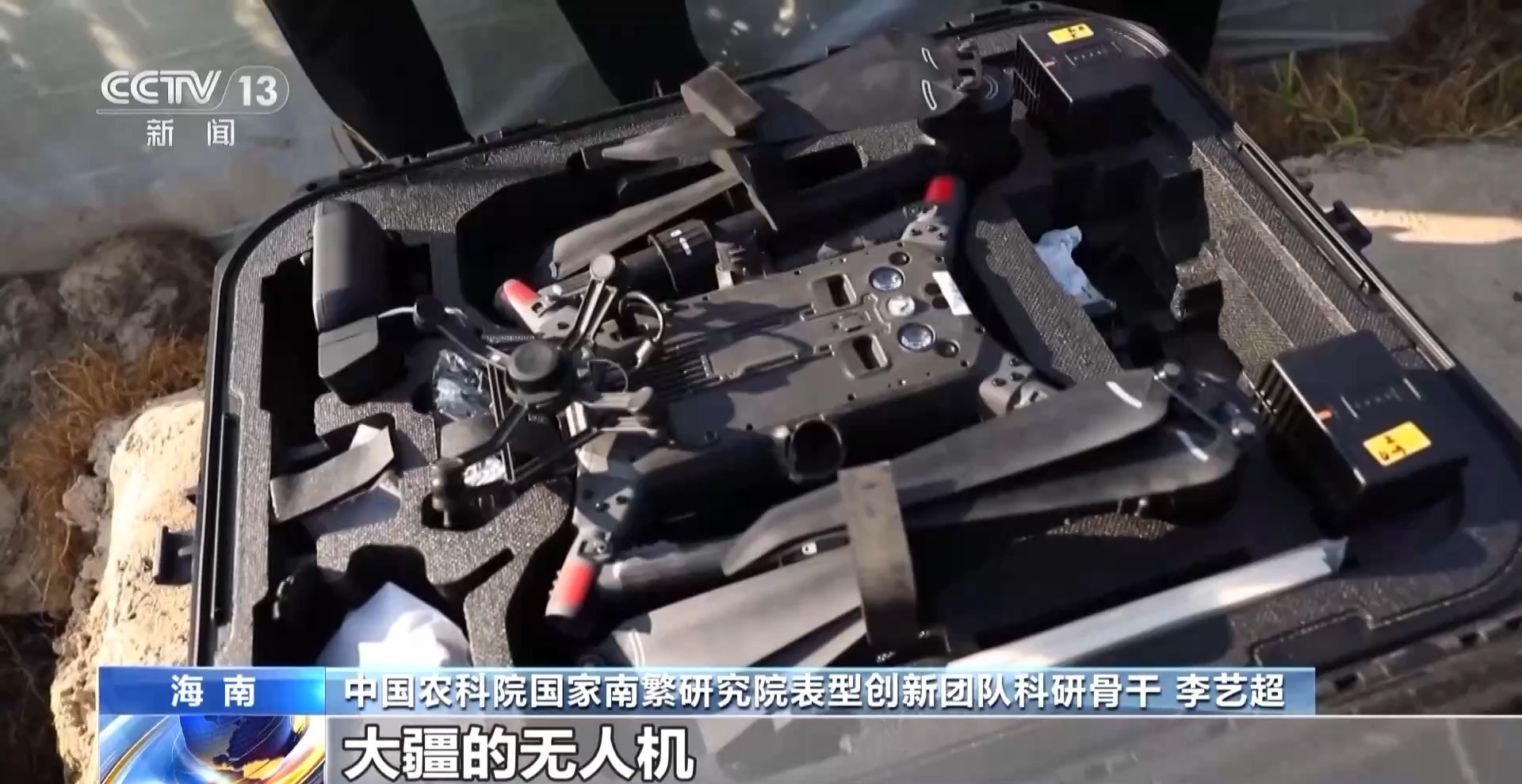 中國農(nóng)科院國家南繁研究院表型創(chuàng)新團(tuán)隊(duì)科研骨干 李藝超:有可能大家誤以為你會(huì)出差,實(shí)際上你是去地里做實(shí)驗(yàn)。這個(gè)是我們目前正在使用的大疆無人機(jī),它上面可以掛載不同的傳感器掛在云臺(tái)上面。