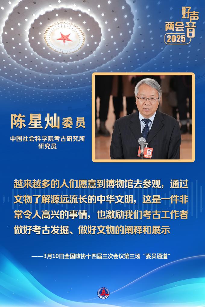 在陳星燦委員看來(lái),越來(lái)越多的人們?cè)敢獾讲┪镳^去參觀,通過(guò)文物了解源遠(yuǎn)流長(zhǎng)的中華文明,“這是一件非常令人高興的事情,也激勵(lì)我們考古工作者做好考古發(fā)掘、做好文物的闡釋和展示”。