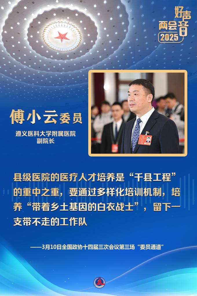 “國(guó)家持續(xù)實(shí)施‘千縣工程’,開展醫(yī)療人才‘組團(tuán)式’支援幫扶,支援西藏、新疆、青海等地區(qū)醫(yī)院和國(guó)家鄉(xiāng)村振興重點(diǎn)幫扶縣人民醫(yī)院?!弊窳x醫(yī)科大學(xué)附屬醫(yī)院副院長(zhǎng)傅小云委員說(shuō)。