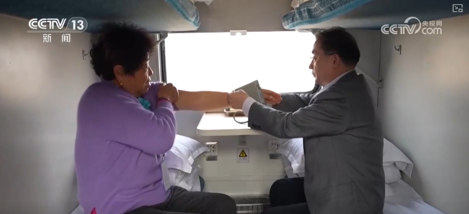除了為重點老年旅客配備緊急呼叫定位器,銀發(fā)專列上還引入了適老化的AI智能旅行監(jiān)護(hù)設(shè)備,并安排兩名專業(yè)醫(yī)生全程車廂巡診,隨時為老年人提供健康管理服務(wù)。