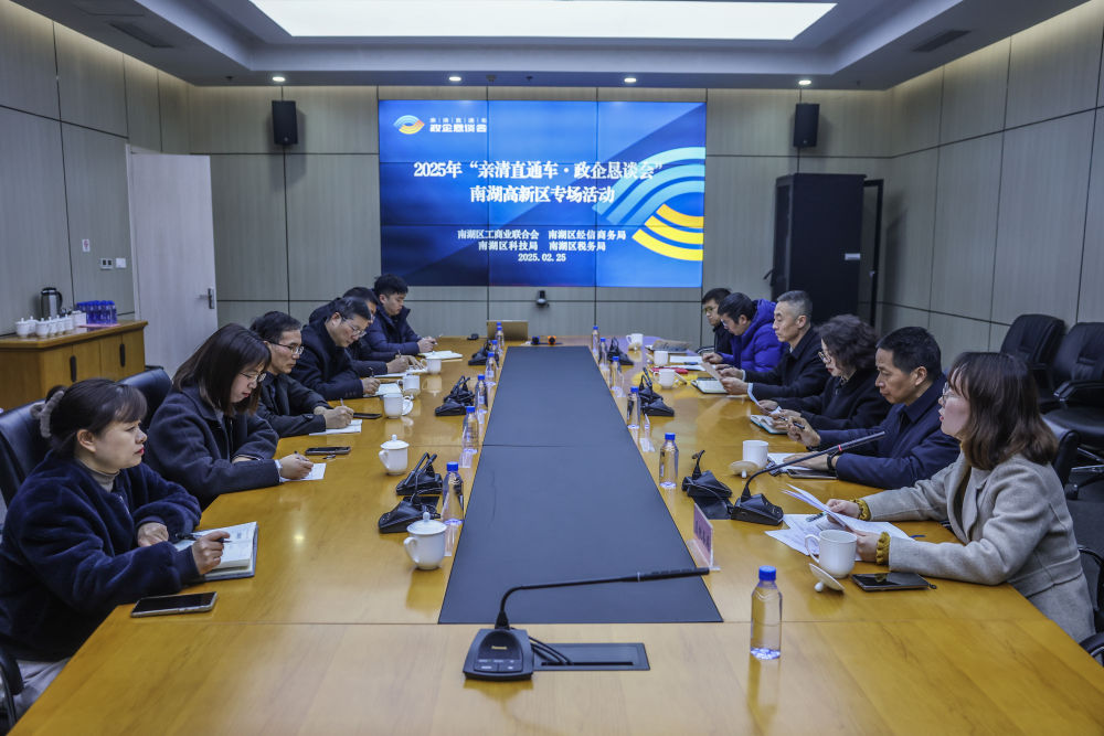 2月25日,浙江省嘉興市南湖區(qū)工商聯(lián)召開(kāi)“親清直通車·政企懇談會(huì)”,為企業(yè)排憂解難,助力民營(yíng)企業(yè)穩(wěn)健發(fā)展。新華社記者 徐昱 攝