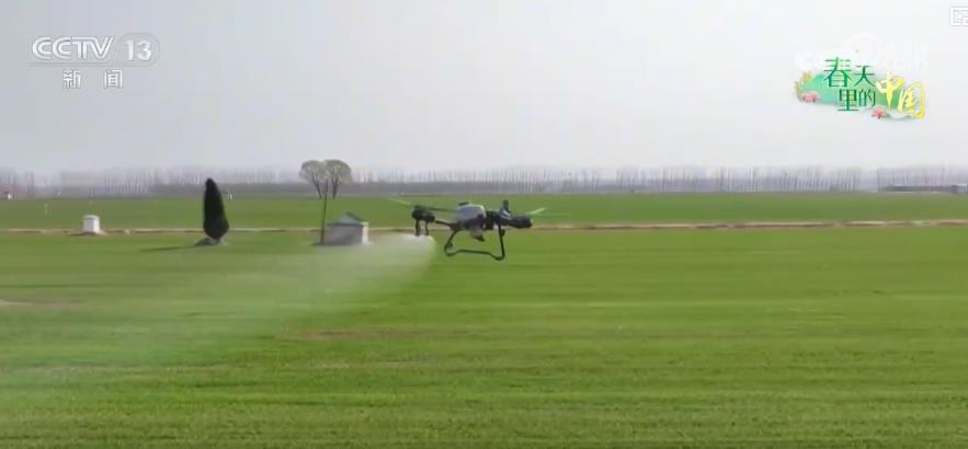 在山東濟南市,冬小麥正處于田間管理和產(chǎn)量形成的關(guān)鍵期,當?shù)剞r(nóng)技人員綜合利用植保無人機、水肥一體化智慧滴灌等科技手段,精細化開展田間管理。